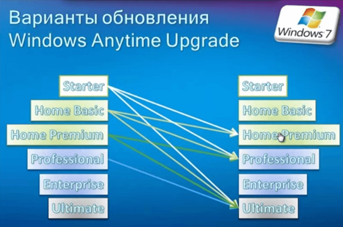 Варианты обновления Windows Anytime Upgrade