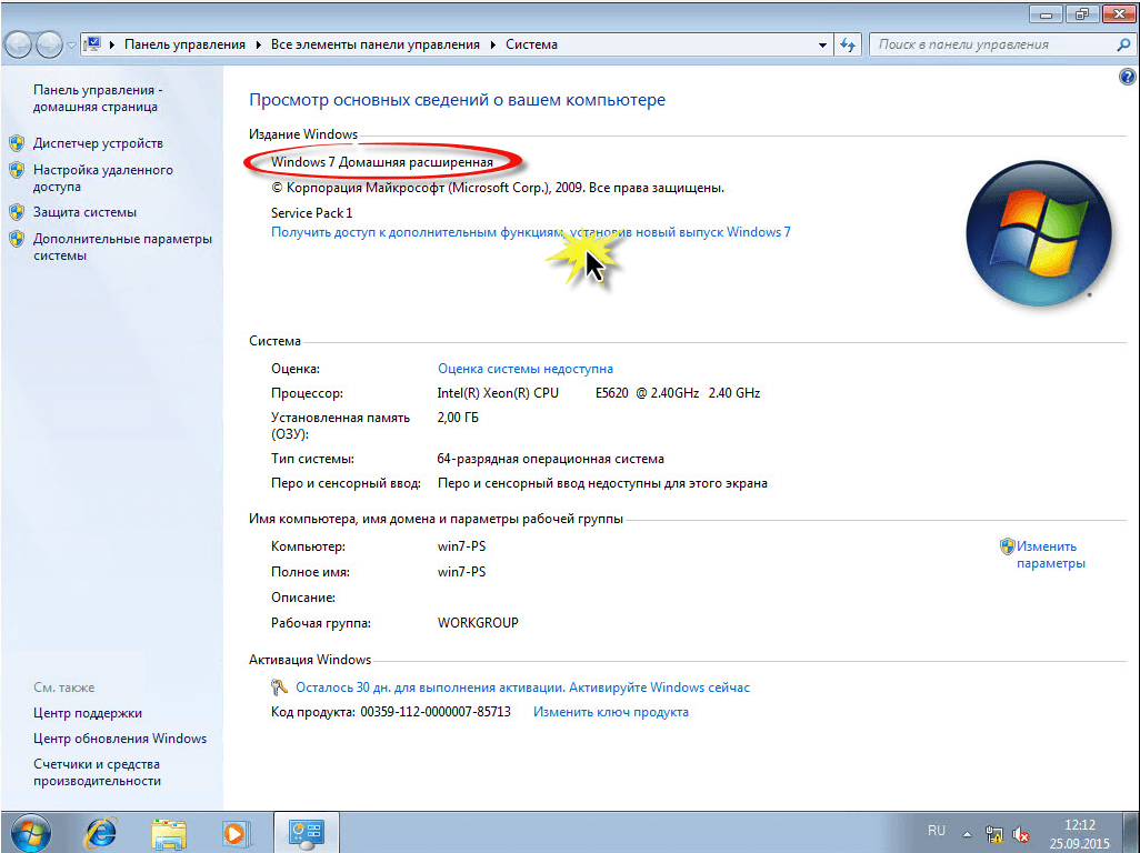 Итак, имеем ноутбук с установленной Windows 7 Домашняя Базовая.