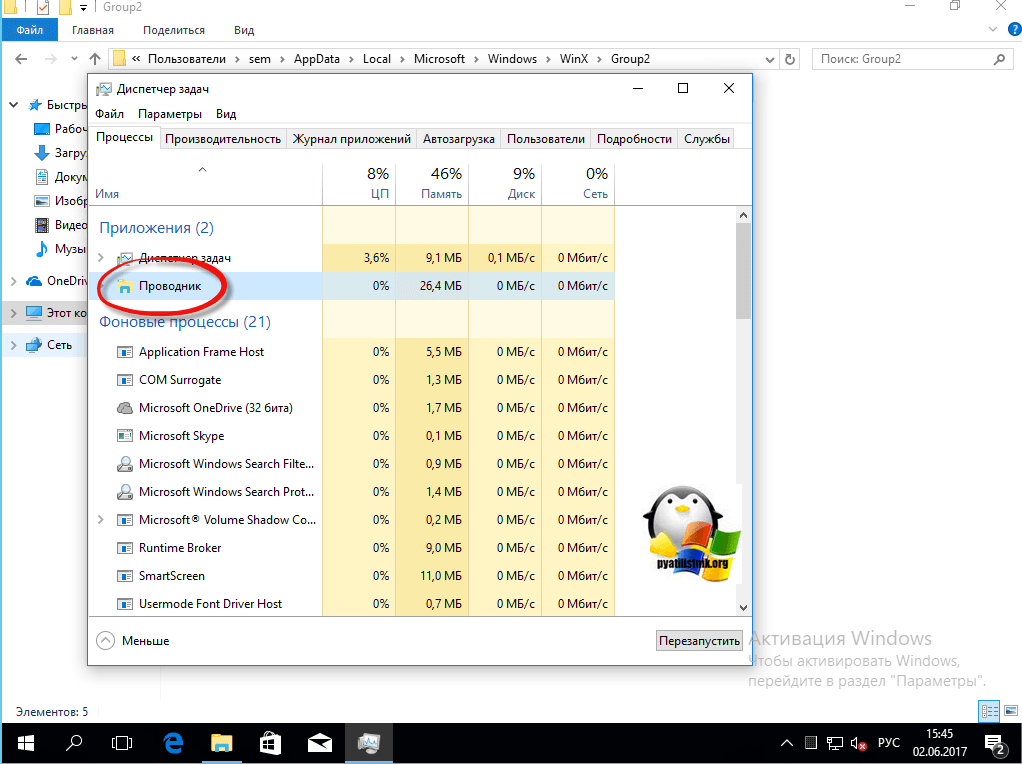 Теперь заменим новый ярлык на старый и перезапустим службу проводника Windows