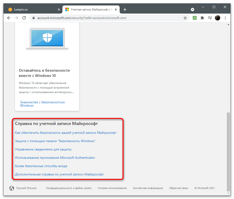 Если у вас еще остались вопросы по поводу безопасности, ответы на них вы найдете при переходе по ссылкам в блоке «Справка по учетной записи Майкрософт». Разработчики постарались ответить на самые популярные вопросы о безопасном использовании аккаунтов.