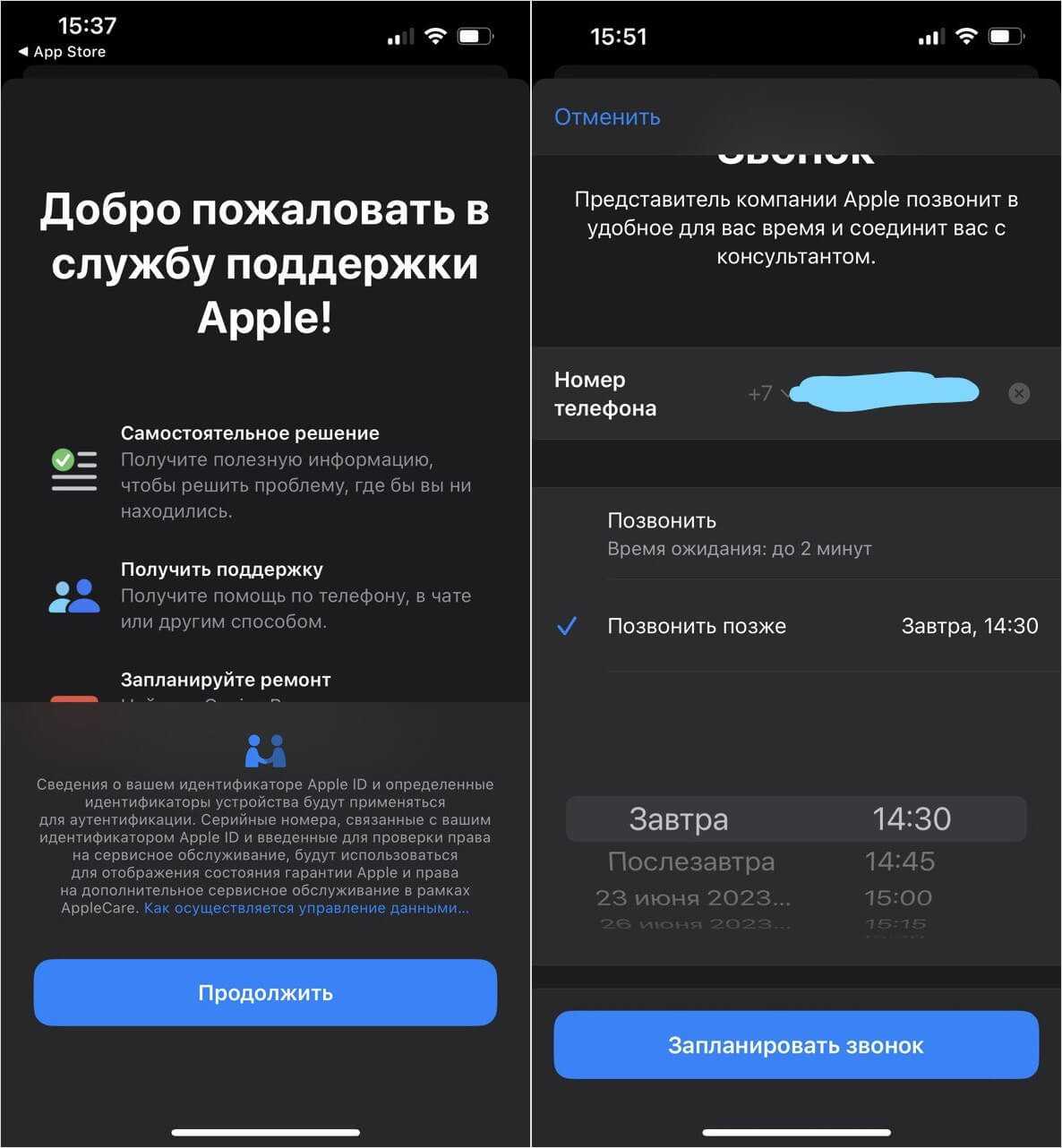 Поддержка Apple — это приложение из App Store, в котором можно быстро найти ответ на интересующий вопрос по ключевому слову. Сброс пароля, проблемы с производительностью, камерой или отключение подписок — все это можно быстро решить через приложение поддержки. В крайнем случае, можете связаться сами или заказать звонок на нужное время. Система также отобразит, сколько вам придется ждать ответа специалиста на линии, что очень удобно.