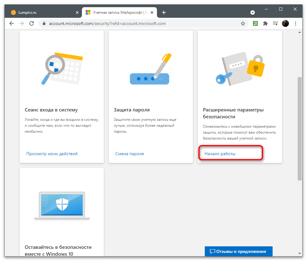 Если в плитке «Расширенные параметры безопасности» нажать по надписи «Начало работы», вы перейдете точно в то же меню с настройками, о котором шла речь в предыдущем разделе статьи про двухфакторную проверку подлинности. Там вы настраиваете методы подтверждения и решаете, необходима ли для этой учетной записи усиленная защита.