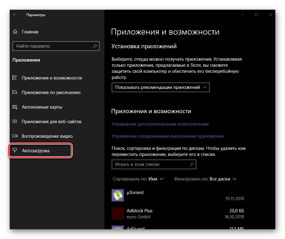 - Выберите категорию “Приложения” и далее “Автозагрузка”.