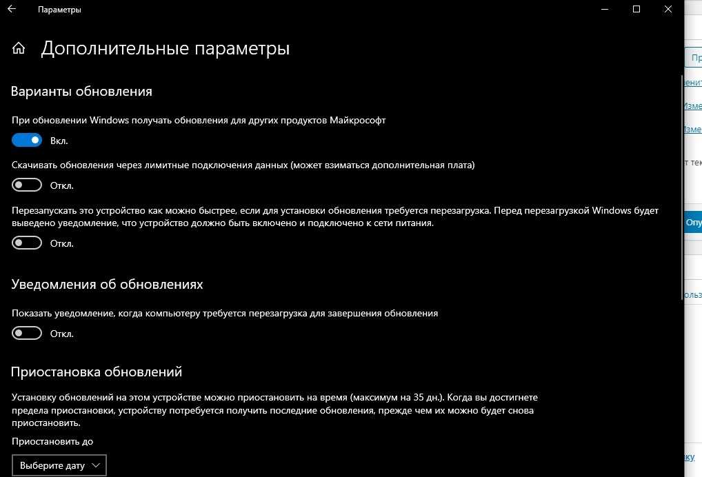 - Раскройте заголовок «ДополнительныеПараметры», без перехода в «ЦентрОбновлений»;