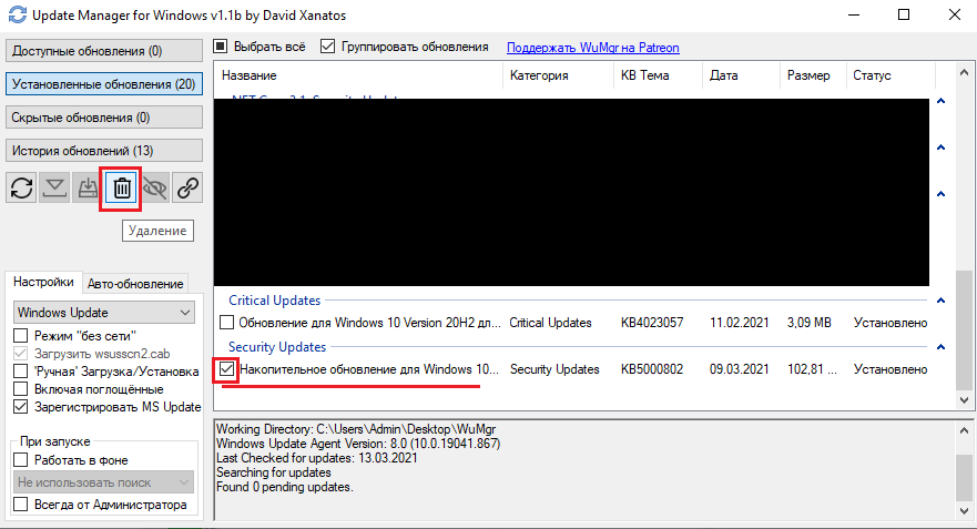 Скрытие обновлений Windows при помощи WuMgr (Update Manager for Windows).