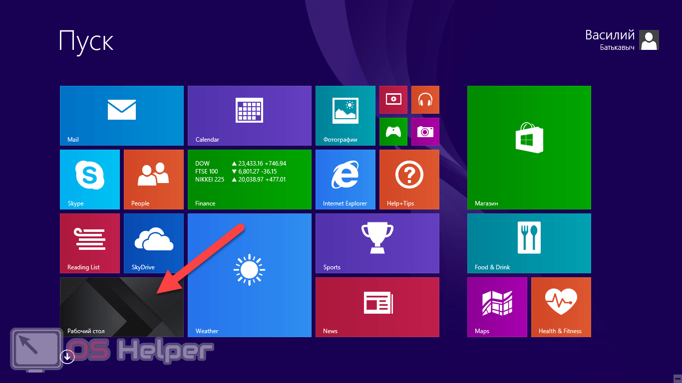 - В плиточном меню жмем по элементу, запускающему рабочий стол.