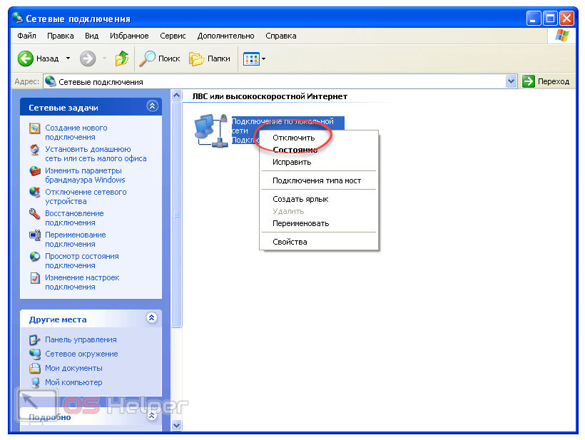 - Делаем правый клик по имеющемуся подключению и из контекстного меню выбираем пункт его деактивации.