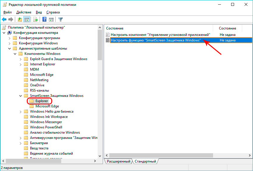4) Отключите SmartScreen Защитника Windows через редактор групповой политики.