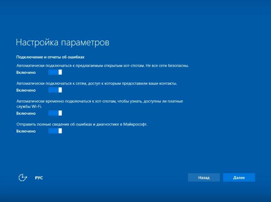 Так же как и на предыдущем шаге, здесь необходимо сдвинуть все ползунки в состояние «Выключено» и снова нажать «Далее».