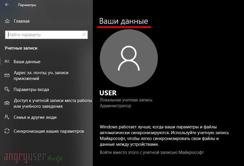 Возможно, вы и так уже используете локальный аккаунт, тогда вышеуказанной надписи там не будет, и внешний вид подраздела будет выглядеть так: