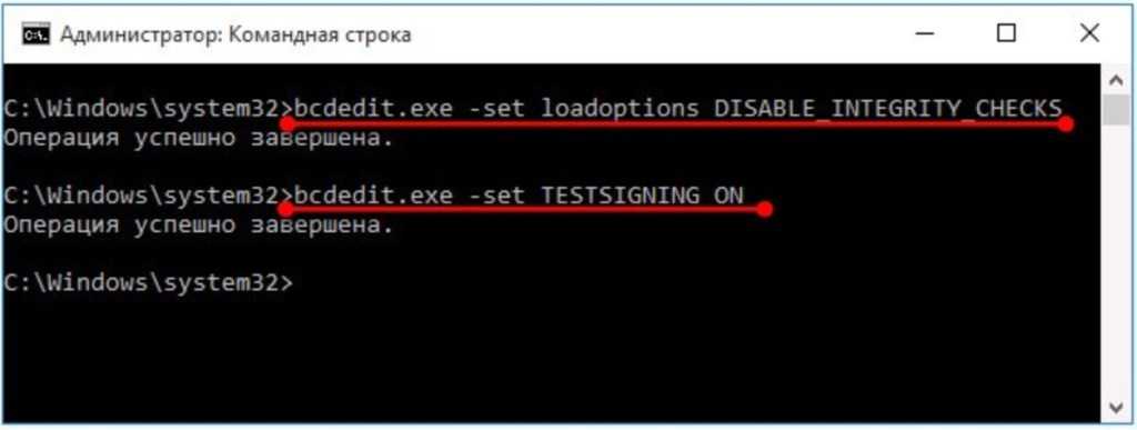 bcdedit.exe -set loadoptions ENABLE_INTEGRITY_CHECKS bcdedit.exe -set TESTSIGNING OFF
