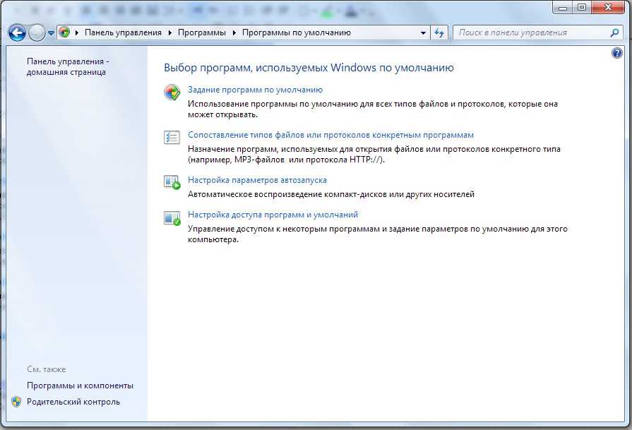 В Виндовс 7 такое действие выполняется в «Программах по умолчанию»:
