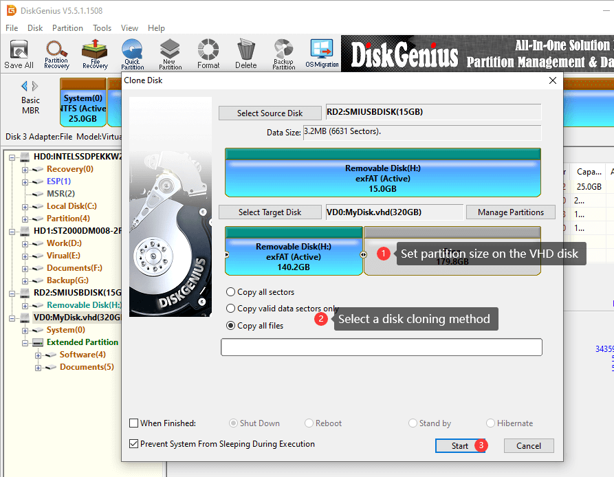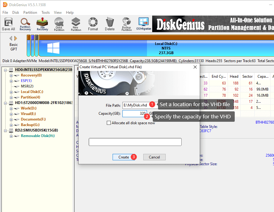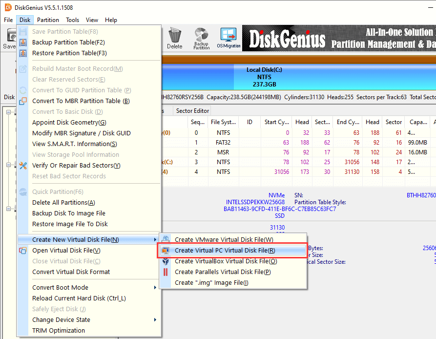 Method 2: Convert a physical hard drive to VHD using DiskGenius