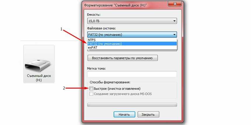 Форматирование так же производит настройку носителя для работы в совместимости с имеющейся системой. Формат загрузочной флешки для windows 10 должен быть «FAT32». Процесс подготовки такой: