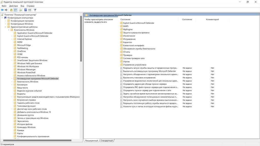 Конфигурация компьютера > Административные шаблоны > Компоненты Windows > Антивирусная программа Microsoft Defender