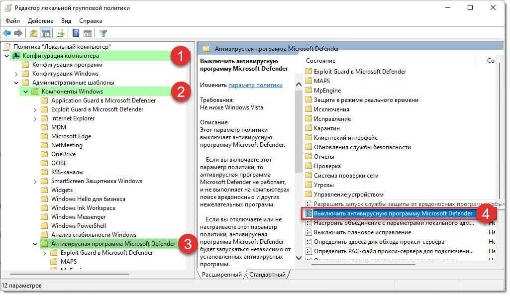 Полная остановка антивируса Windows 11 Microsoft Defender