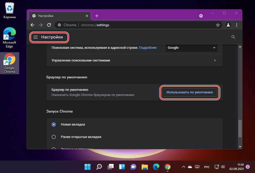 В левом меню выберите обозреватель и щелкните по «Использовать эту программу по умолчанию».