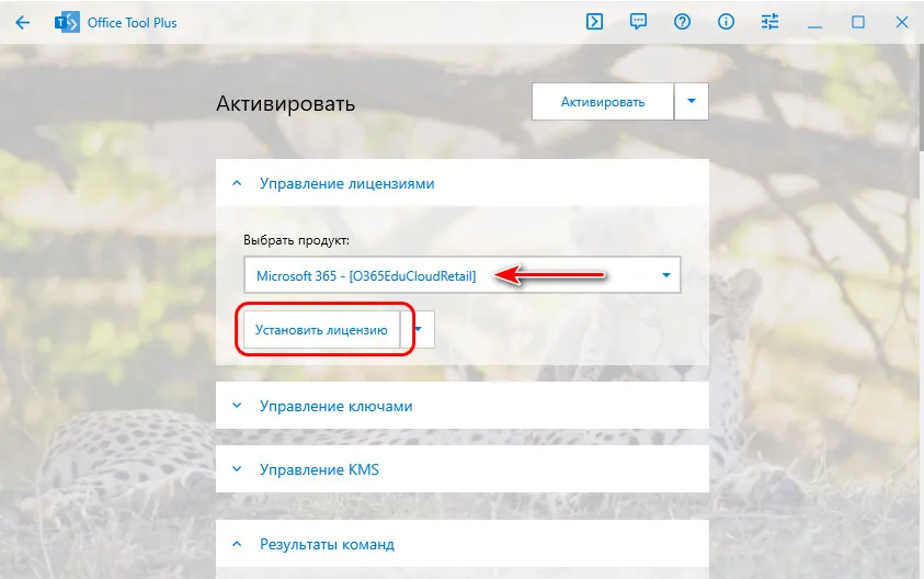 И ещё один способ сброса триал-срока использования Microsoft Office. Можете применять его как дополнительный, если первый способ вдруг не сработает, а такое может быть. В том же разделе «Активировать» и в том же блоке «Управление лицензиями» смените выпуск Office, например, с Office 2021 на Office 365 или наоборот. Нажмите «Установить лицензию».