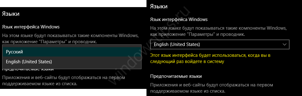 Если вы не выберете выход, Windows изменит язык интерфейса в следующий раз, когда вы войдете в систему.