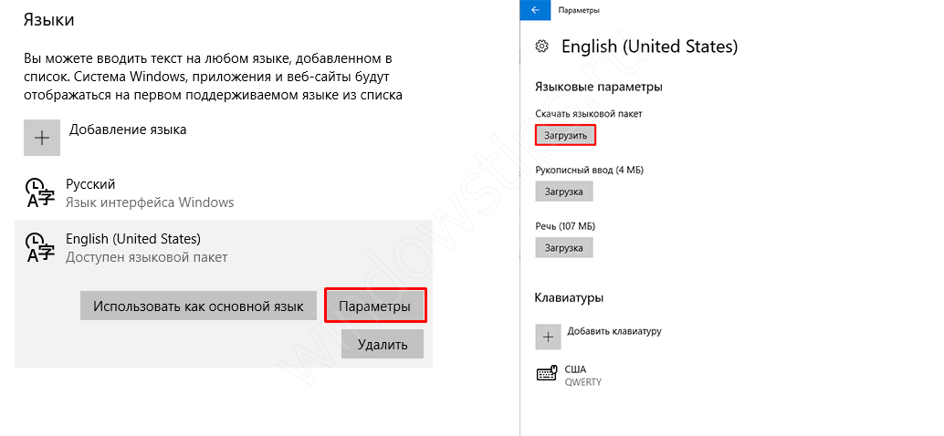 В Windows 10 есть встроенная утилита «Параметры», позволяющая управлять настройками системы. Если ОС на вашем компьютере уже обновлена до версии 1803 April Update, то с помощью этой утилиты можно загрузить дополнительный ЯП. Если у вас установлена более старая версия Windows, то воспользуйтесь любым из описанных ниже методов — результат будет тот же. Для загрузки ЯП с помощью утилиты «Параметры» сделайте следующее: