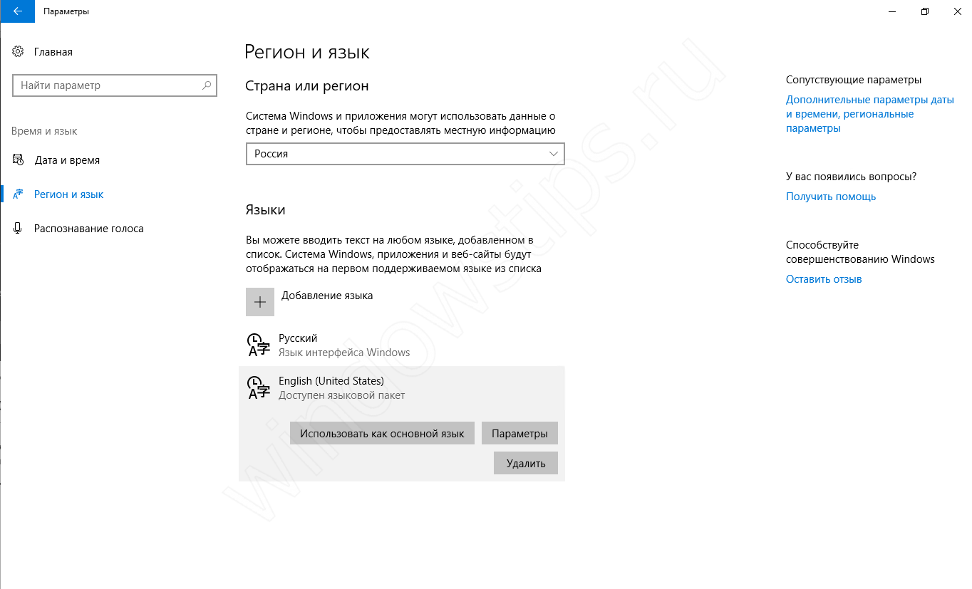 Установка русского языка интерфейса в Windows 10 версии 1903, 1809 и 1803
