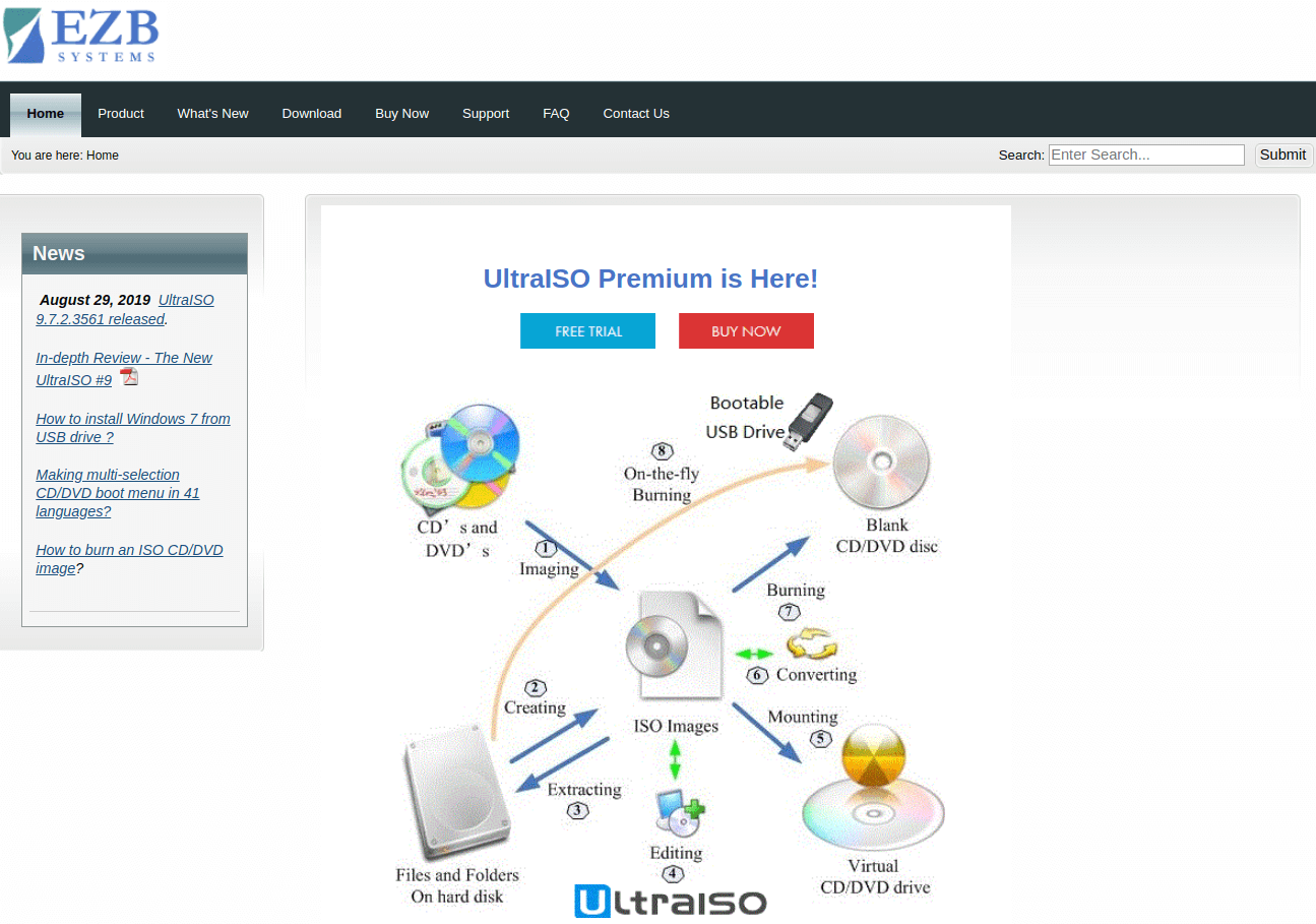 Обратите внимание, что это платный программный продукт. Посетителям сайта предлагается скачать триал-версию UltraISO Premium