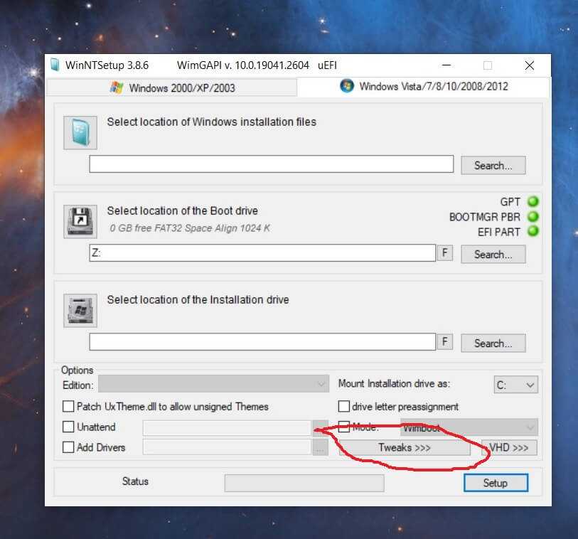 Работа с программой WinNTSetup