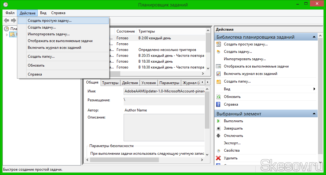В открывшемся окне выбираем мастер создания простых задач и выполняем его инструкции.