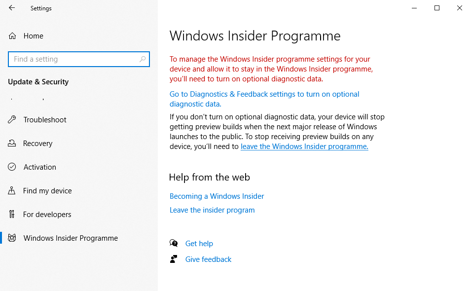 If you don’t want to be a Windows Insider, you can opt-out of the Windows Insider Program.