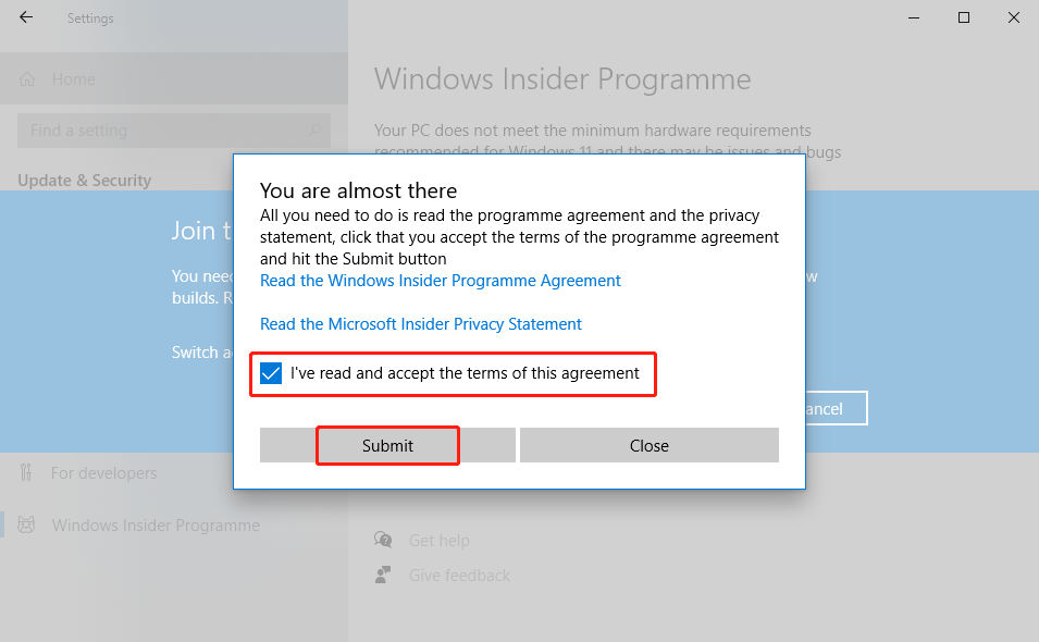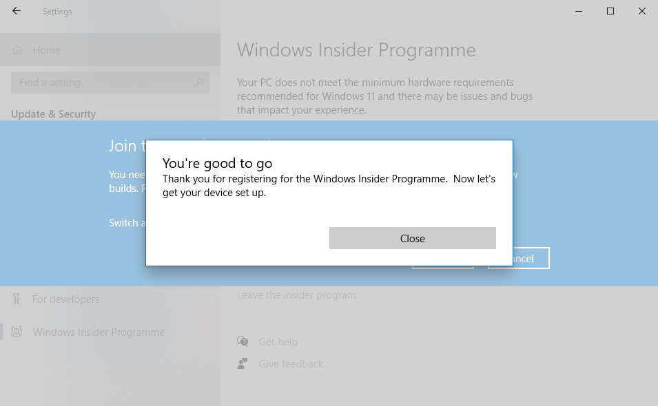16. When the loading process ends, you join the Windows Insider Programme successfully and become a Windows insider.