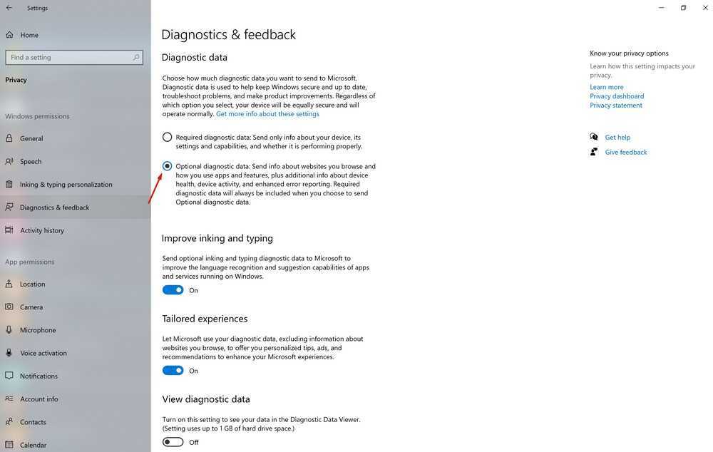 Также важно проверить, не выключены ли у вас настройки дополнительных диагностических данных. Это важно, потому что нужно учитывать желание Microsoft максимально понимать, как себя ведет новая Windows 11 на вашем устройстве. Для этого ей нужно больше информации с телеметрии