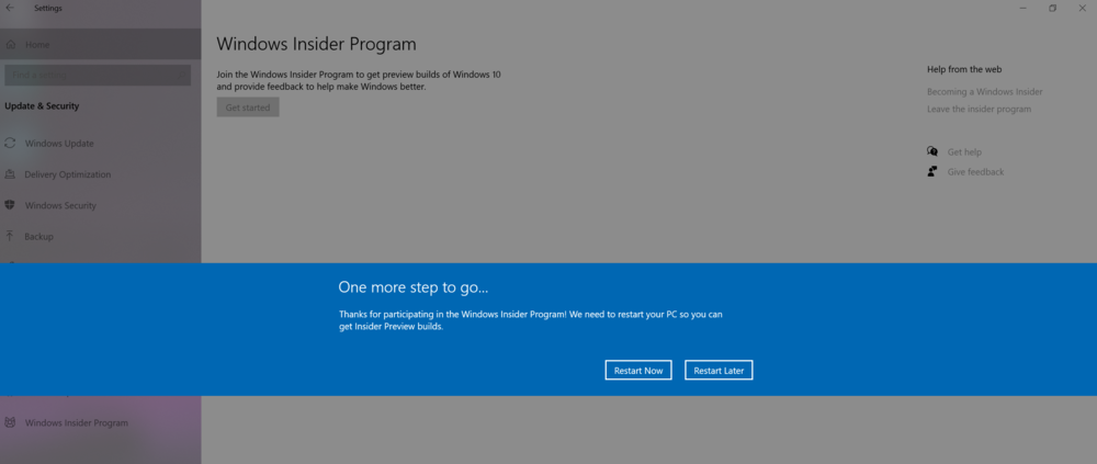 From this point forward you are an insider and will receive the new builds depending on your ring choice. After becoming an insider, it can take some time to get the builds. Wait patiently until you receive a notification.