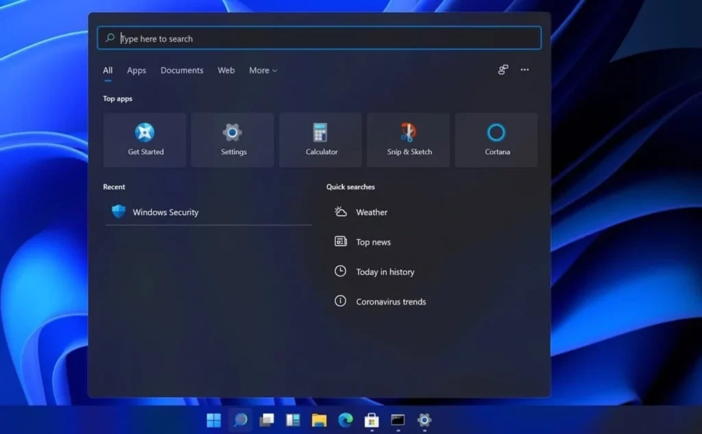 Панель поиска аналогична Windows 10 и может предоставлять результаты поиска в OneDrive, локальной сети, интернете. Однако, из-за того, что она больше не отделена от меню Пуск, то фактический эффект выглядит более однородным.