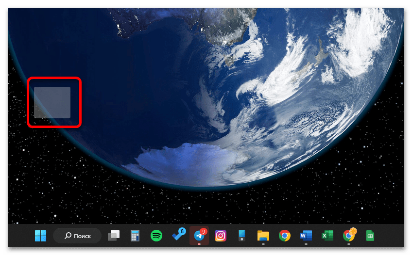 - Текущая папка должна пропасть (стала полностью прозрачной). Если у вас образовалась пунктирная рамка вокруг этой невидимой папки, просто щелкните по любому другому месту рабочего стола.