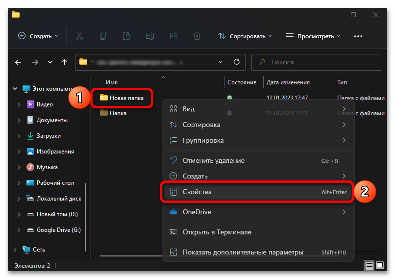 Перейдите к расположению папки, которую требуется скрыть, вызовите ее «Свойства»,