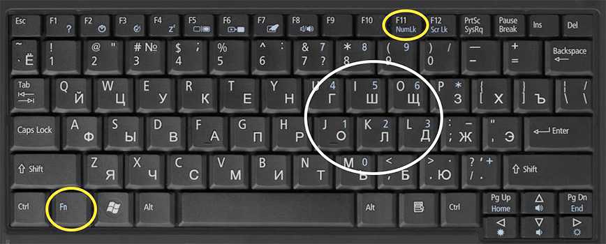 Обратите внимание, что если у вас ноутбук и отдельные цифры расположены на самих буквах (I (ш), K (л) L (д)) и т.д., то для их активации нужно зажать комбинацию кнопок. Клавиатура с цифрами на буквенных клавишах