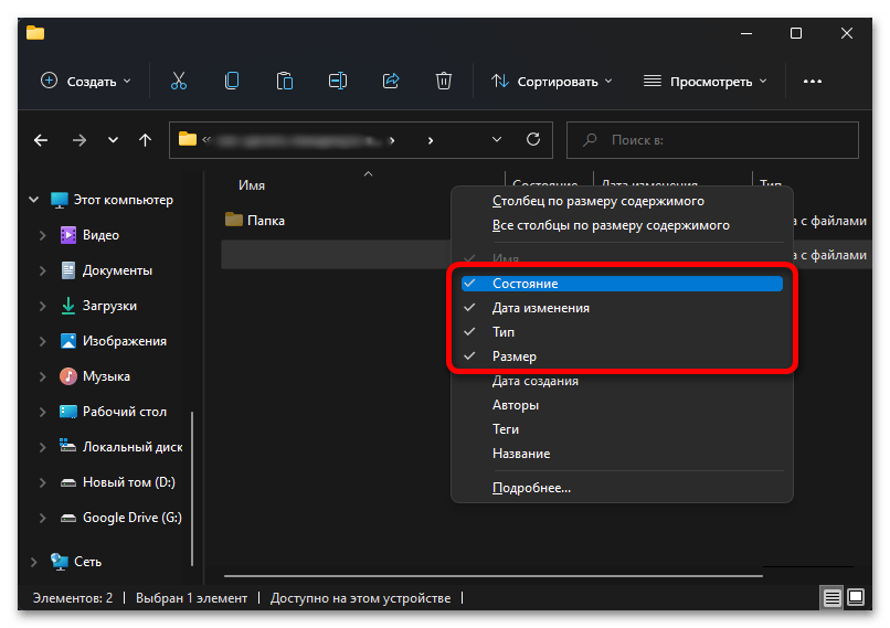 Единственным решением в таком случае будет деактивация отображения данных параметров, для чего необходимо кликнуть ПКМ по «шапке» «Проводника» и снять галочки напротив всех пунктов, где они были установлены. Правда, следует понимать, что это может усложнить навигацию и поиск нужных объектов на ПК.