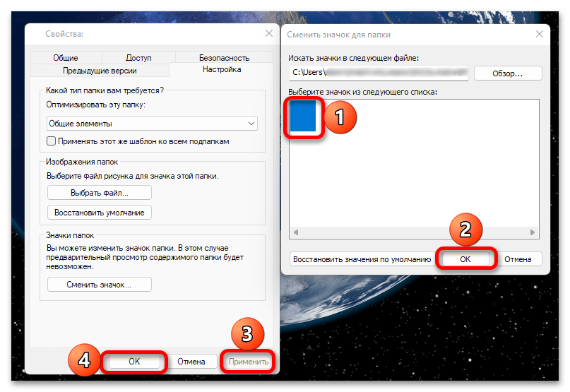 В окне свойств папки воспользуйтесь кнопками «Применить» и «ОК».