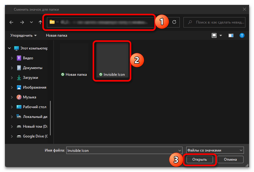 Если с отображением «невидимого» значка папки (неважно где – на рабочем столе или в «Проводнике») у вас возникнут проблемы (будет видна рамка или он будет отображаться как черный квадрат), выполните следующее: