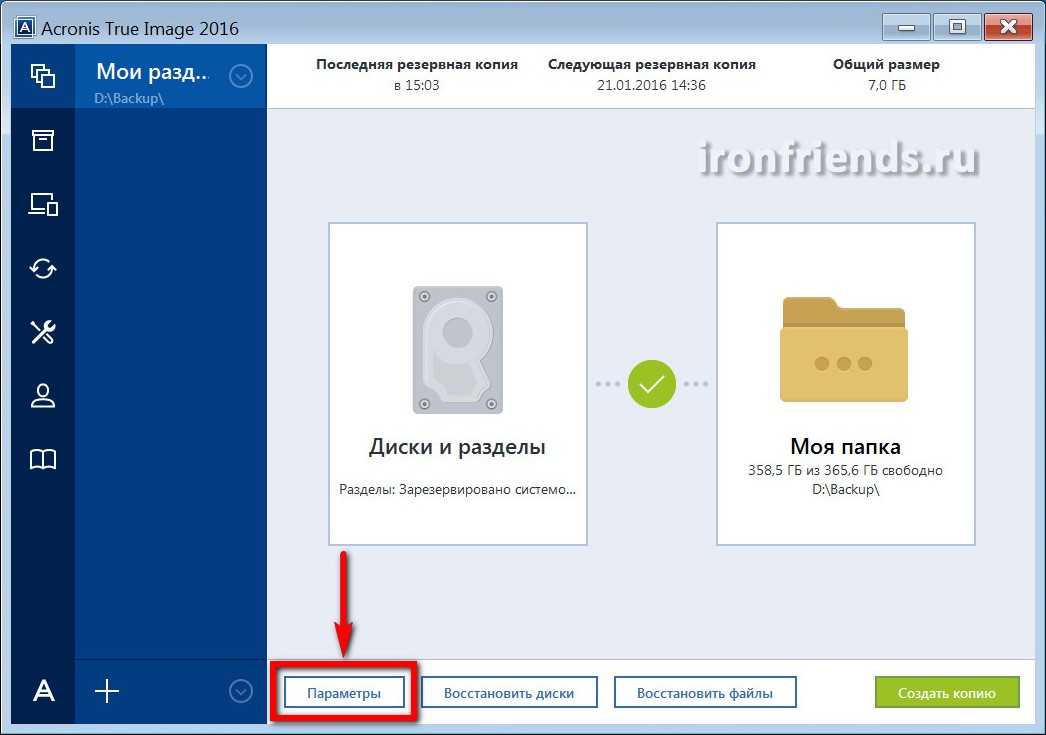 Параметры резервного копирования