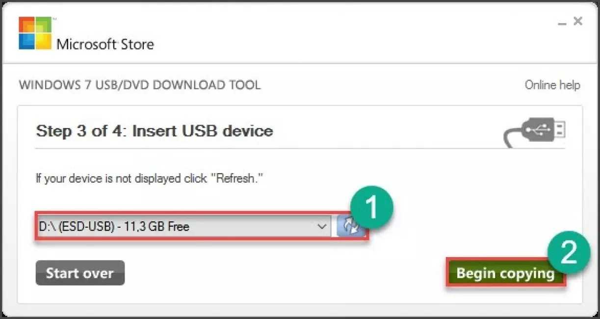 Выбираем нужную флешку и жмем кнопку «Begin copying».