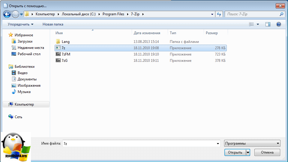 И как видите, нужная мне утилита появилась в списке доступных программ, после чего формат rar будет у меня открываться программой 7 zip.