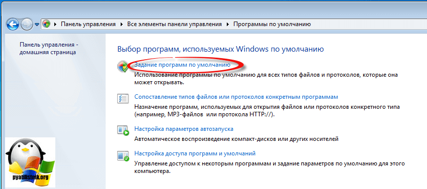 - Выбрать умолчания для этой программы > а вот этот позволит, какая ассоциация файлов в windows 7, будет у вас. Щелкаем именно по нему.