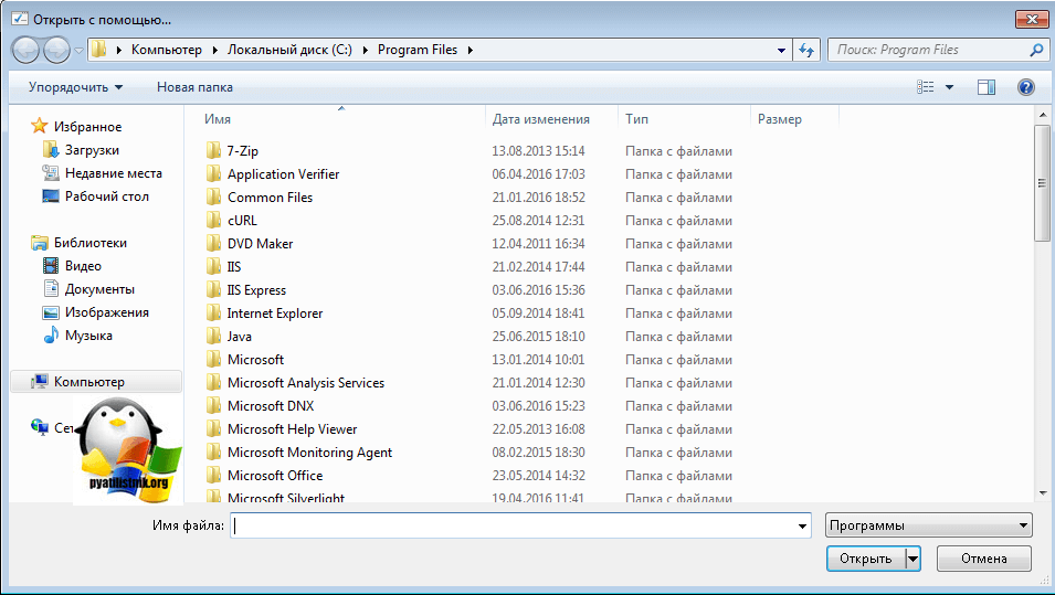 У вас откроется окно Выбора программы со списком доступных, допустим у вас не отобразилось нужно программы, в данном случаем можно нажать кнопку Обзор, для указания пути до нужной утилиты, которую вы хотите задействовать.