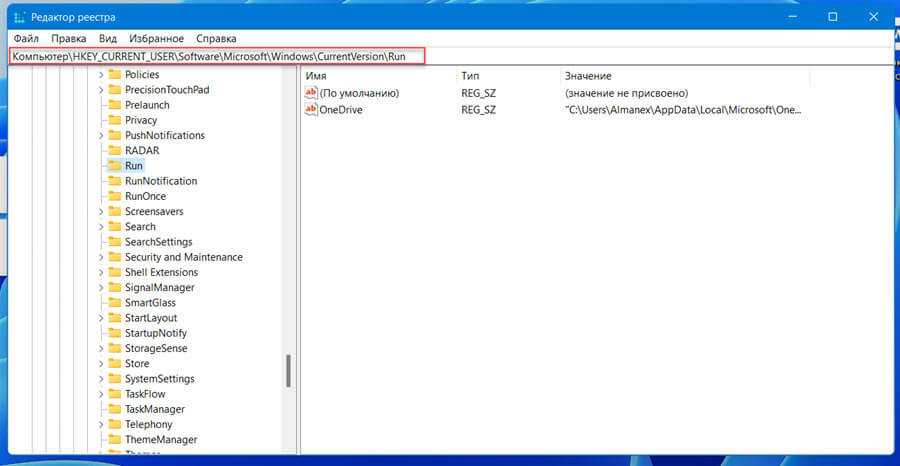 Добавить приложение в автозагрузку используя реестр Windows 11