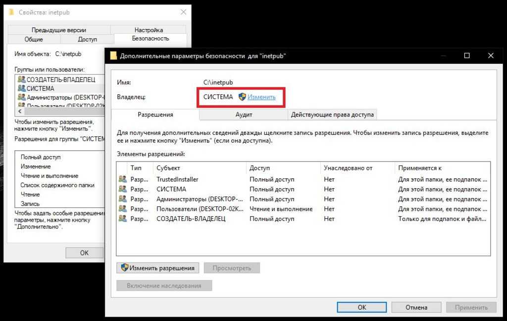 Если это не поможет или указанные разрешения поменять не получится, следует обратиться к вкладке владельца и сменить его на администратора или пользователя, имеющего аналогичные права.