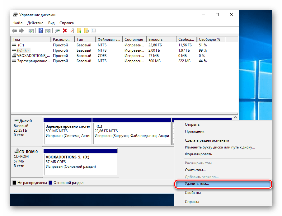 Метод 4: Как удалить диск на виндовс 10 встроенным инструментом