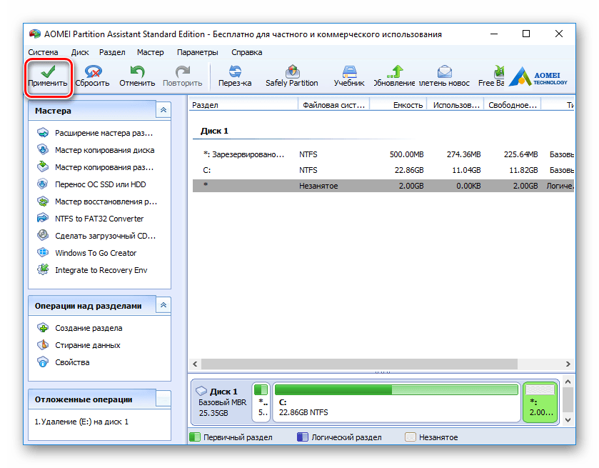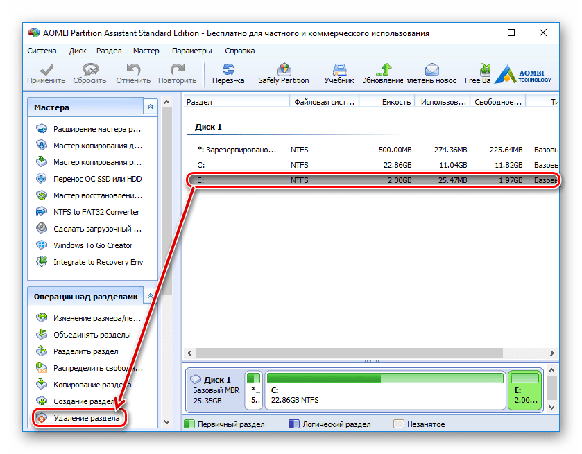 Метод 1: Как удалить диск утилитой «AomeiPartitionAssistantStandard»