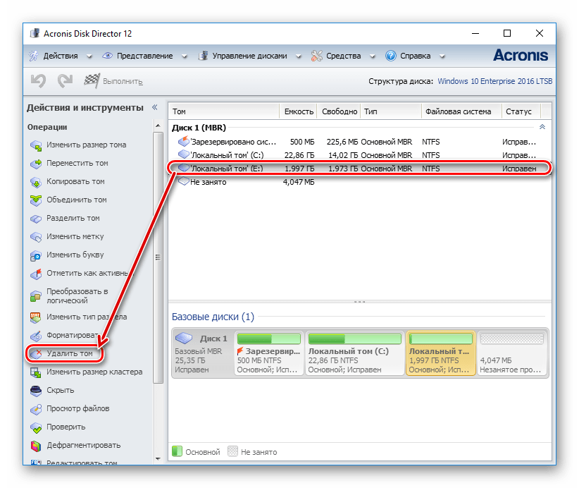 Метод 3: Как удалить том используя «AacronisDiskDirector»