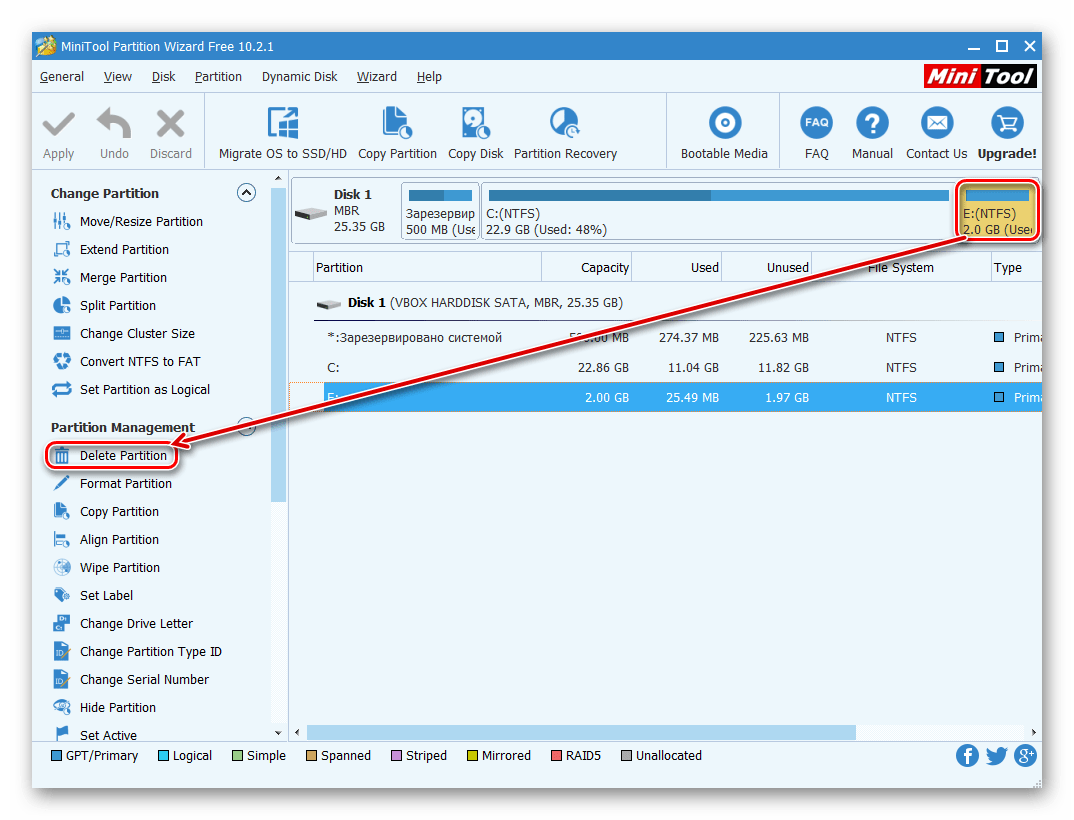 Метод 2: Как удалить раздел программой «MinitoolPartitionWizard»